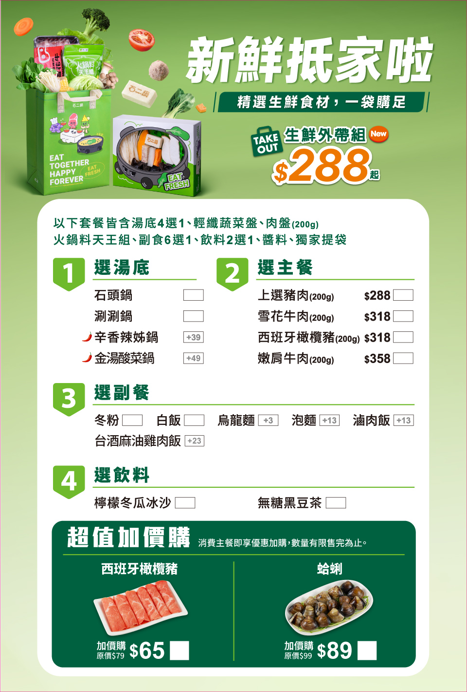 ※台酒聯名商品數量有限,以各店供應狀態為準。 只要新鮮就是好吃, 馬上到石二鍋享新鮮!